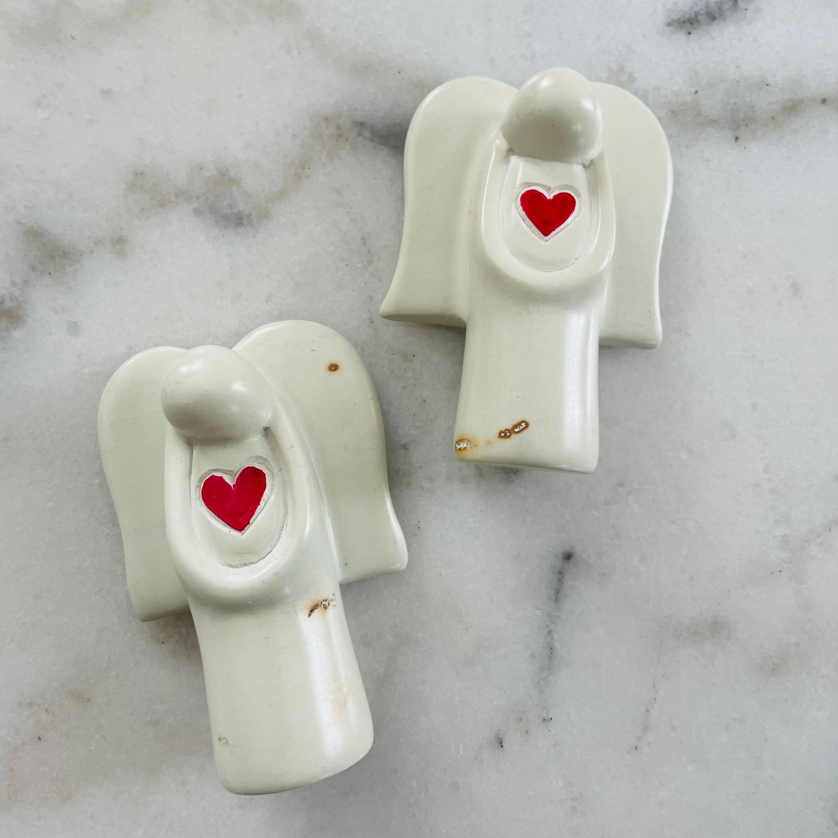 These angels are handmade in Kenya from soapstone. Each purchase supports the artisan who handcrafted the piece. These are handmade items so each one is similar but not exact.
