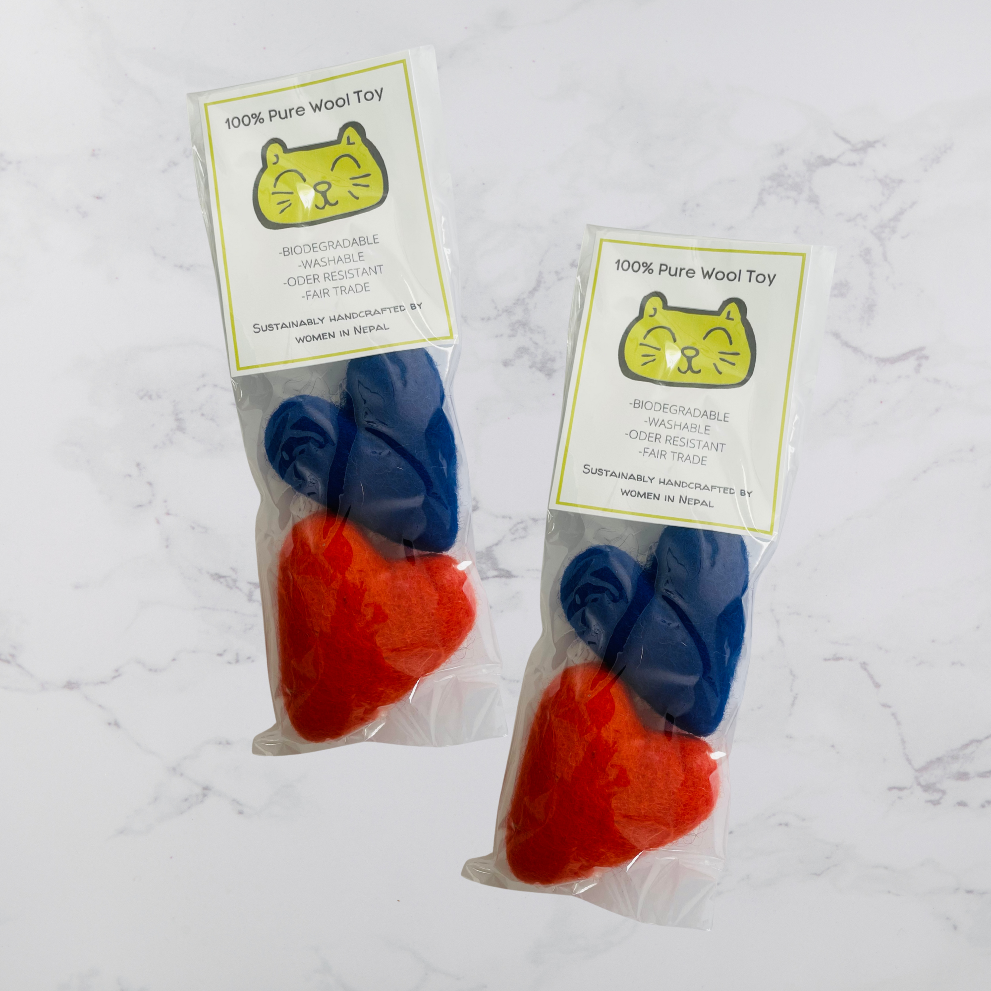 Biodegradable, washable, oder resistant cat toy. Prepackaged and retail ready.